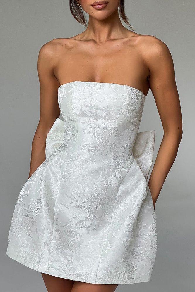 Step into sophistication with our Jacquard Knot Mini Dress, a chic blend of elegance and modernity.